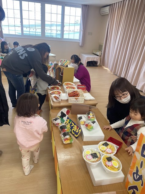 1歳さんはお母さんと一緒に、毎日さんは子どもたちと先生と、週2さんは親子で 親子カフェと合同で、各クラス別々の日で行われました。