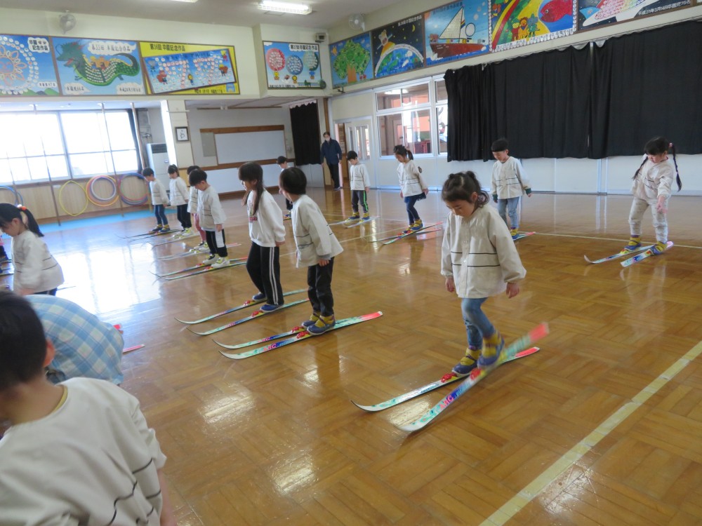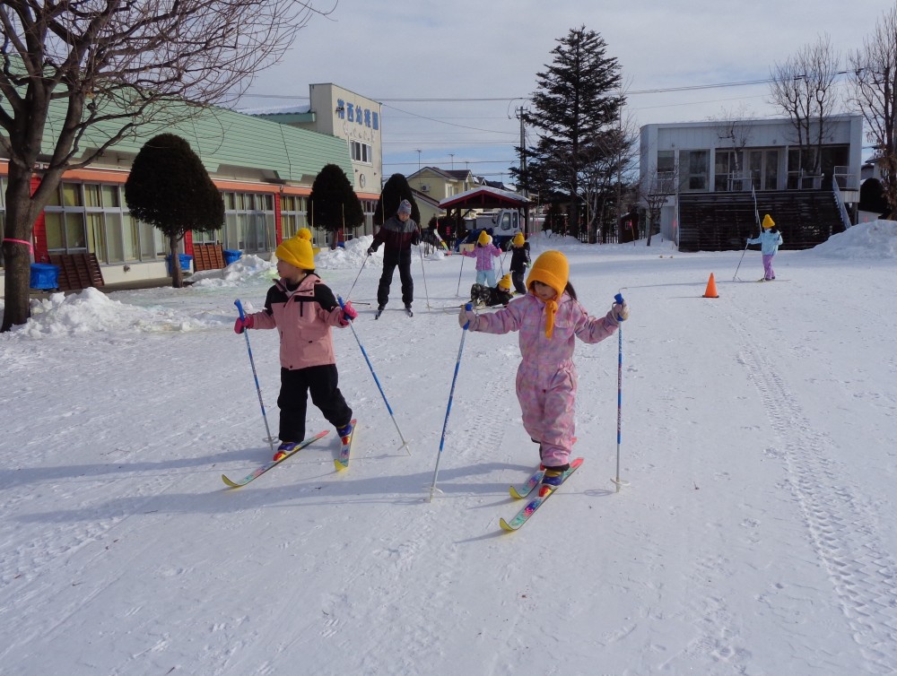 帯西幼稚園では、毎年年長さんの「歩くスキー」を3学期に3回行っています。