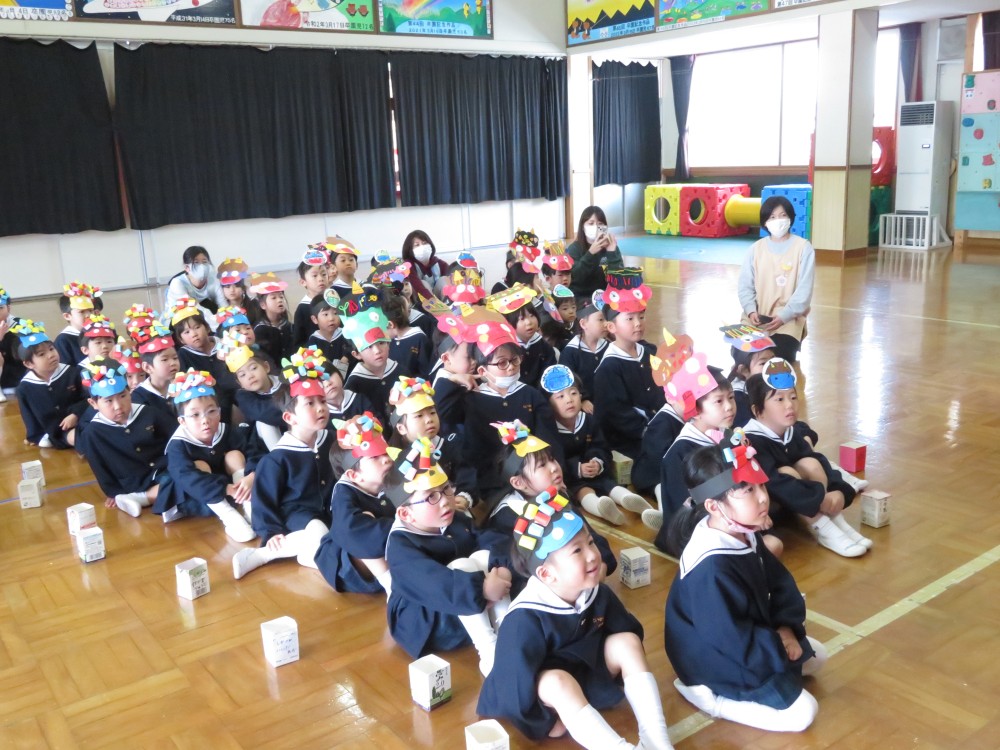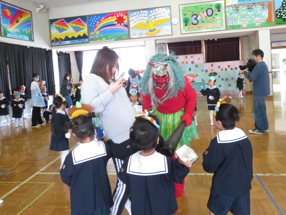 毎年行われる日本の季節行事である「節分の豆まき」が2月2日(月)に行われました。節分の話を園長先生から聞き、子どもたちの心にいる(ケンカ鬼、いじわる鬼、ちらかし鬼、泣き虫鬼、はずかし鬼、ずるっこ鬼、夜更かし鬼、やだやだ鬼)などの鬼を追い払うために、元気に「豆まきの歌」を歌いました。