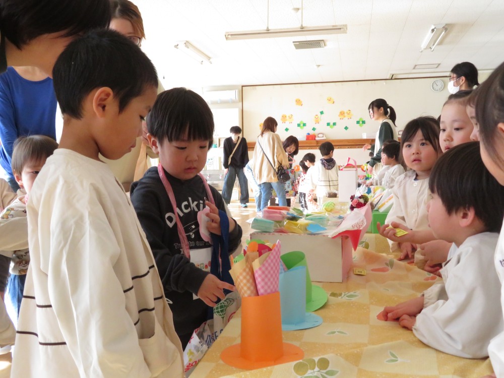 2月4日(水)に一日体験入園が「しろくま」の教室で行われ、年少さんのお兄さん、お姉さんたちと「お店屋さんごっこ」をしました。