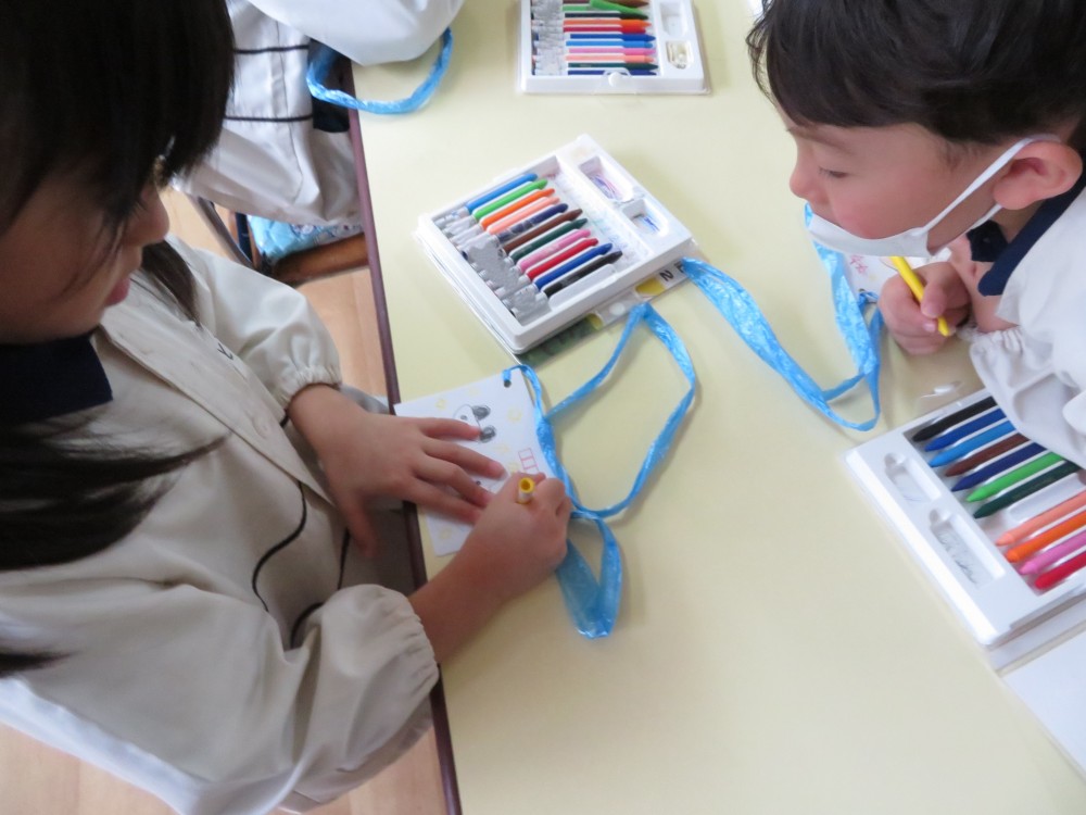 12月2日(火)に向けて、年長さんでは買い物に使うお金を入れる「さいふ」をつくりました。子どもたちは、それぞれ自分の好きな絵を描いて、色を塗りかわいい「さいふ」をつくりました。子どもたちは今から「お店屋さんごっこ」を楽しみにしているようです。