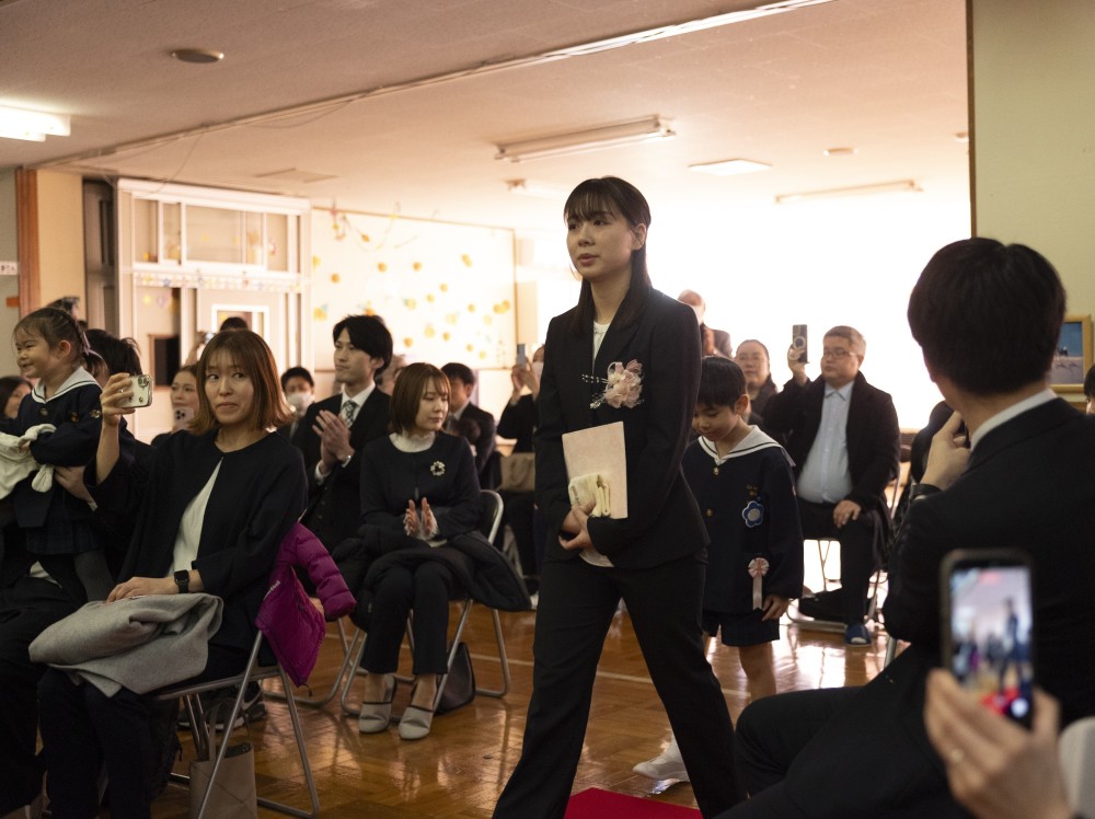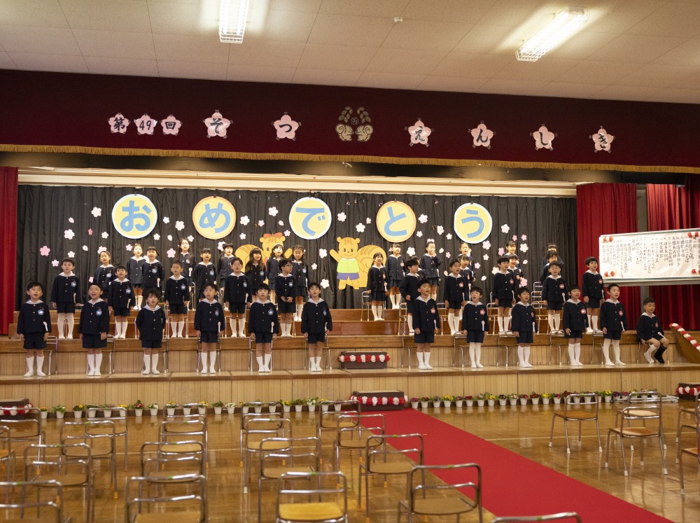 3月14日(土)に第49回帯西幼稚園卒園式が行われ、41名の卒園児が幼稚園を巣立ちました。式では、立派に園長先生から卒園証書をもらい、式の中で歌う3曲のうたも気持ちを込めたきれいな歌声を会場に響かせていました。また、退場時には一人ひとりが将来の夢を元気に語り、会場からは大きな拍手が送られました。小学校へ行っても、「あきらめないで最後までやればできる」という帯西幼稚園で学んだことを忘れずに頑張ってほしいと思います。