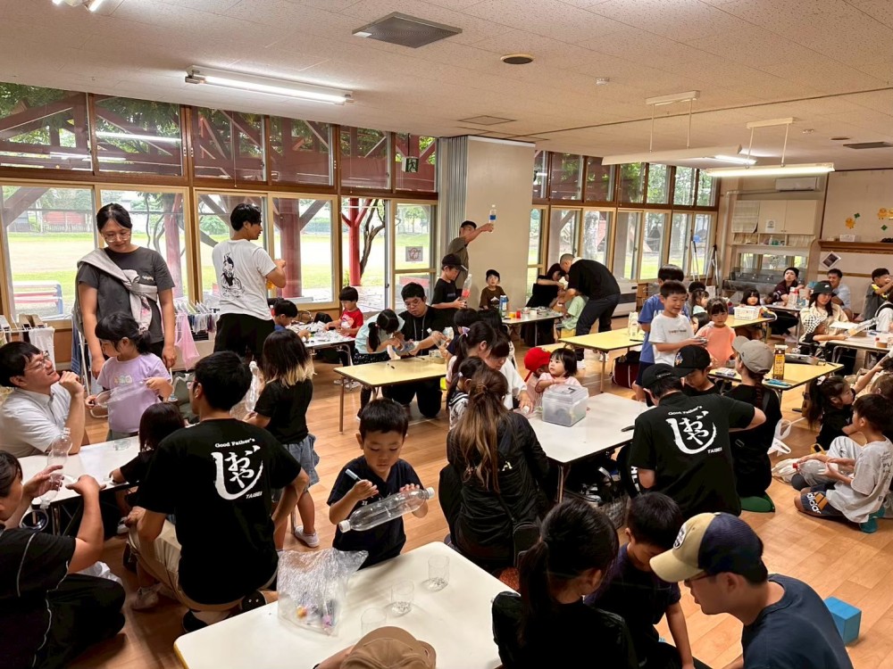 9月7日(日)に幼稚園をお借りして「ペットボトルロケットづくりと焼肉」を行いました。今回の参加者は、親子で75名でした。