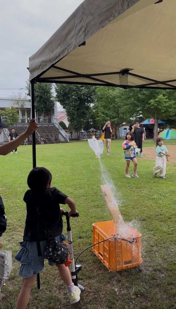 ペットボトルロケットづくりでは、ペットボトルのカット、羽根のデザイン等、親子で協力して素晴らしい作品ができました。子どもたちはキラキラした瞳でロケットを飛ばしていました。